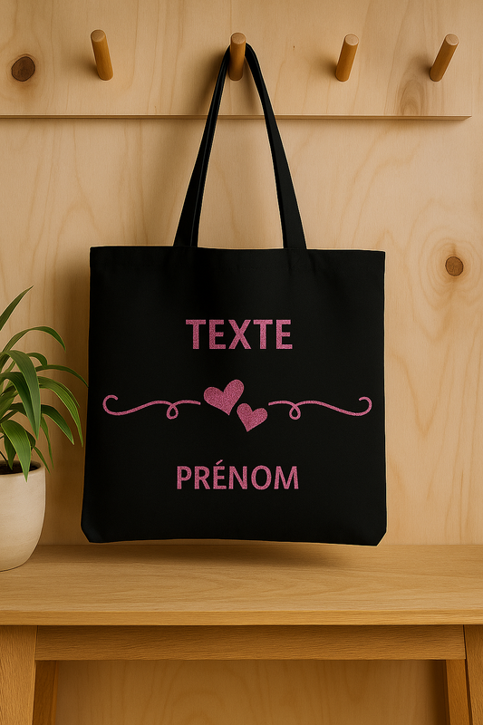 ⚫ Tote-Bag noir avec des cœurs